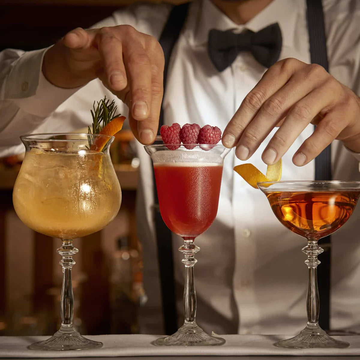 De 1924-glazen herken je aan hun karakteristieke steel, de fraai bewerkte voet en de unieke kelk die zich subtiel opent naar de lippen. Dit versterkt niet alleen het drinkcomfort, maar ook de smaakbeleving. De collectie ademt de sfeer van de roaring twenties: stijlvolle loungebars, verfijnde cocktails en een vleugje nostalgie, perfect gecombineerd met een open blik op nieuwe trends.